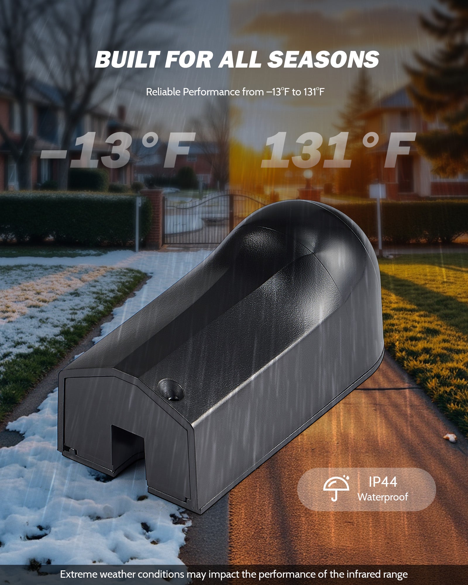 Built to Last in Any Weather: Rain, snow, or heat—our infrared sensor kit is built to handle it all. With an IP44 waterproof rating and durable casing, it performs reliably in extreme temperatures from -13°F to 131°F.
