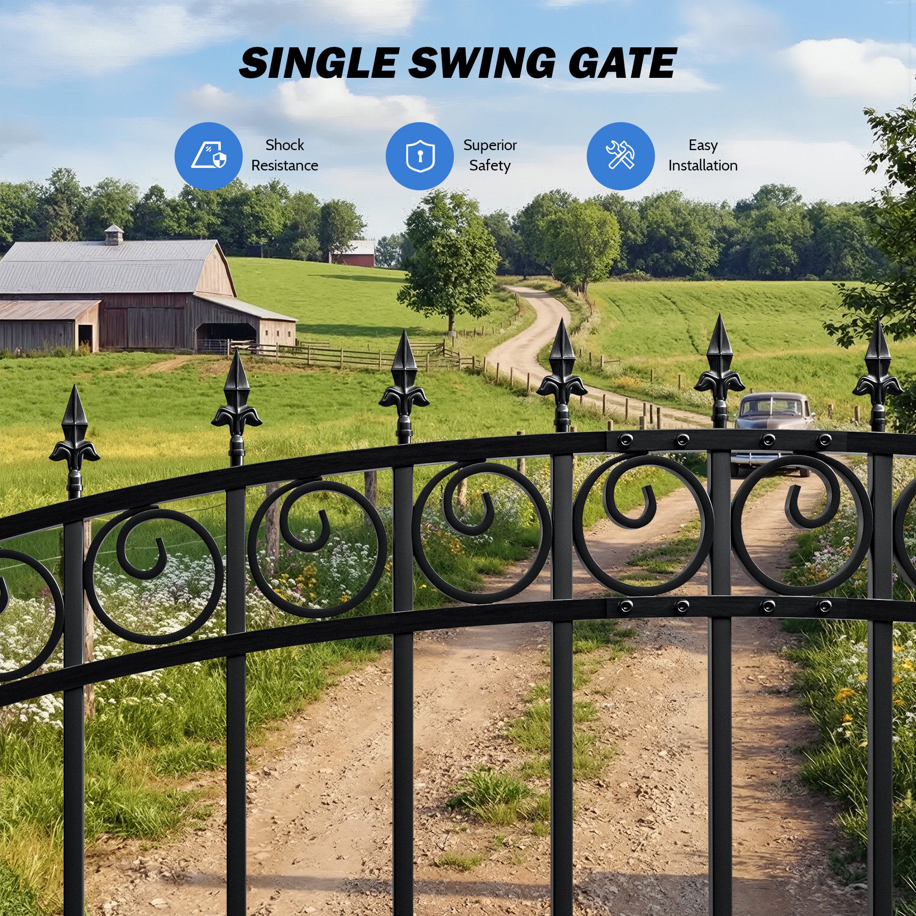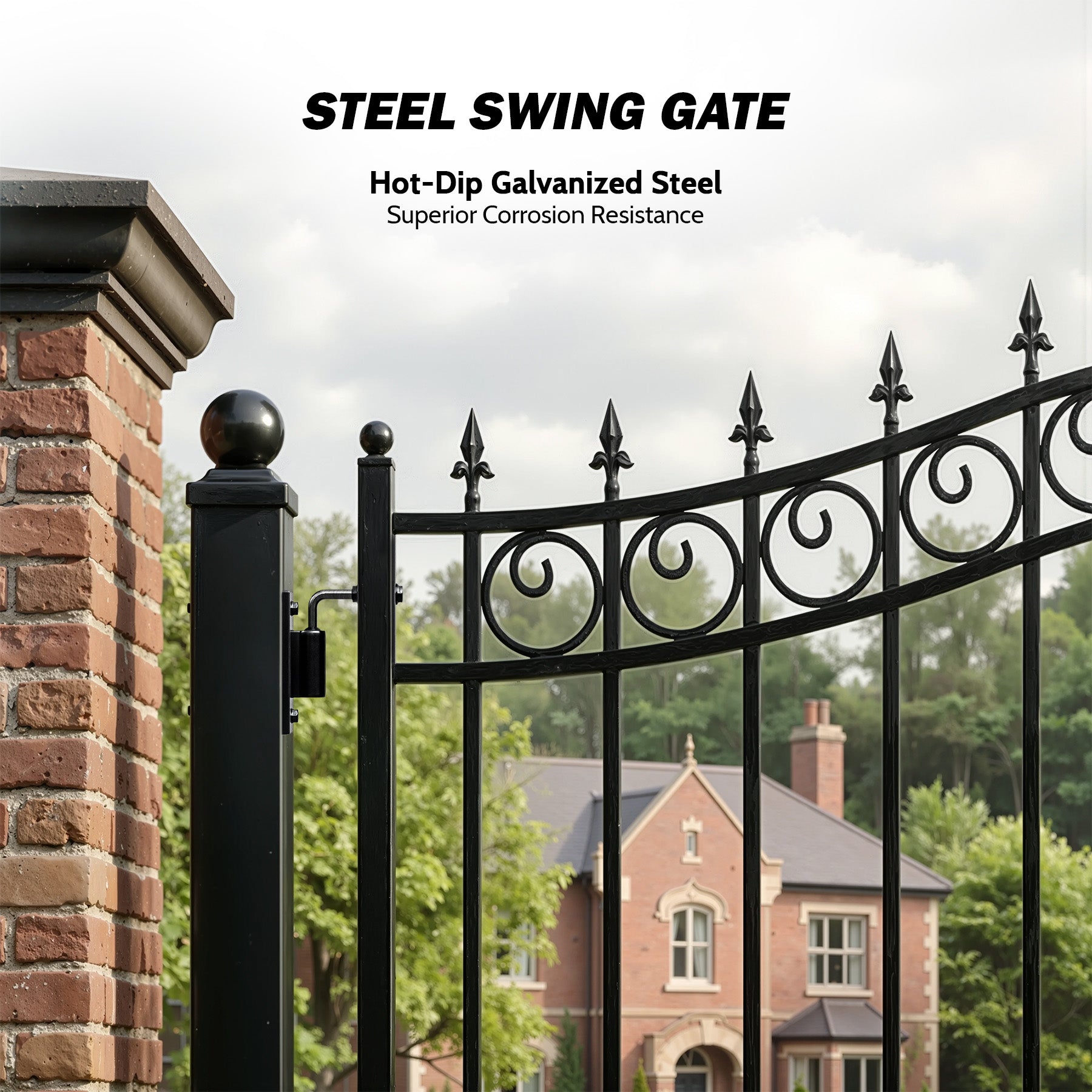 Give your home a stylish and secure upgrade with ZUMI's single swing driveway gate. This elegant arched swing gate not only creates a grand, inviting entrance but also helps keep your family and property safe. Crafted from hot-dip galvanized steel with a corrosion-resistant finish, it's built to withstand sun, rain, snow, and other harsh weather. Compatible with ZUMI's swing gate openers or any standard model, automation is simple and convenient. Installation is quick and hassle-free with pre-drilled holes, all included hardware, and clear instructions. Elevate your home's charm and curb appeal with a gate that blends timeless beauty with lasting functionality.