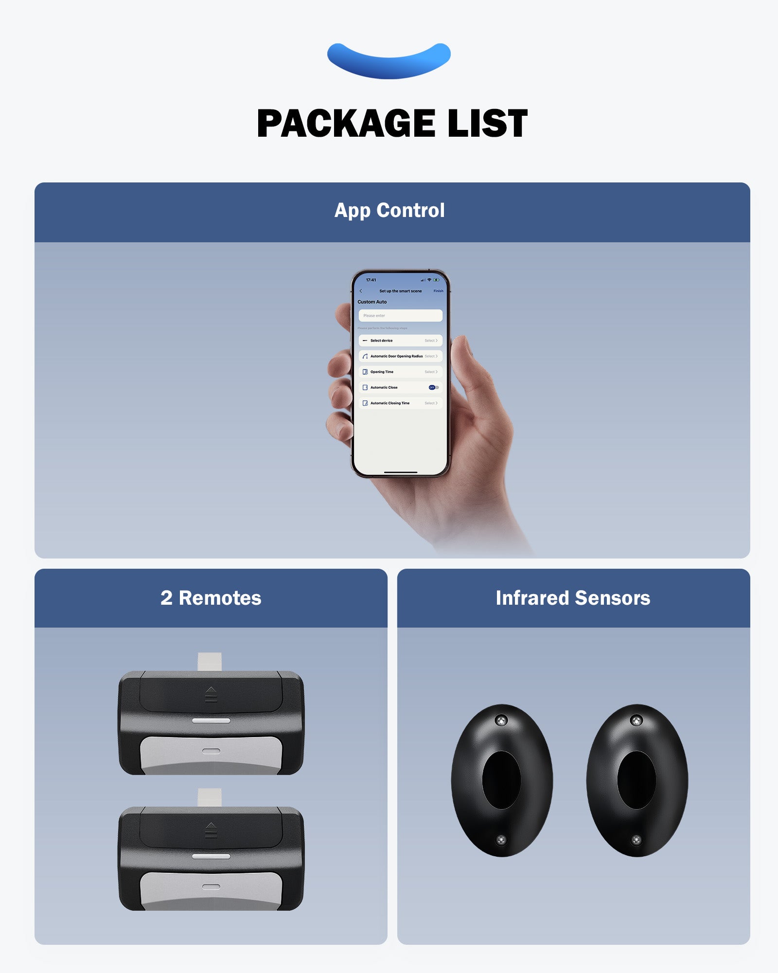 Effortless Entry: Operate Zumi's garage door remotely through the convenient app for flexible access anytime, anywhere. The sensitive infrared sensors halt the door immediately if anything blocks its path